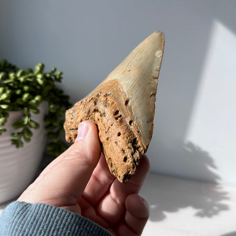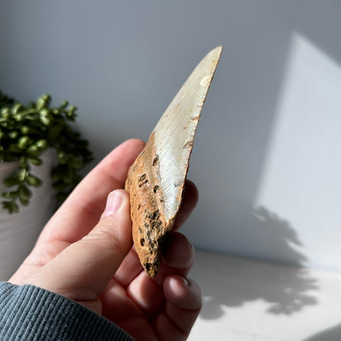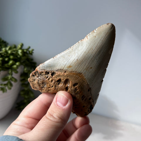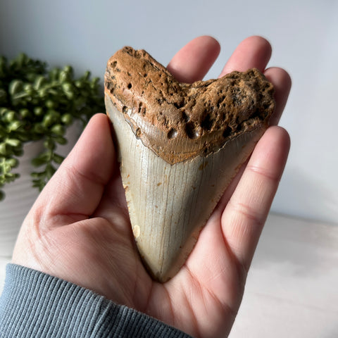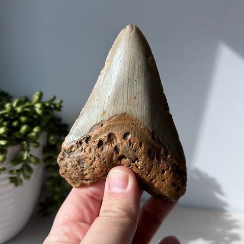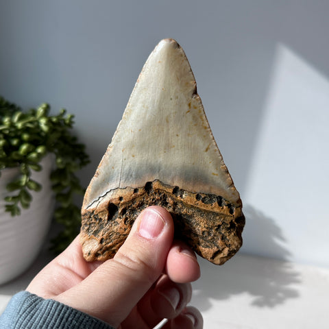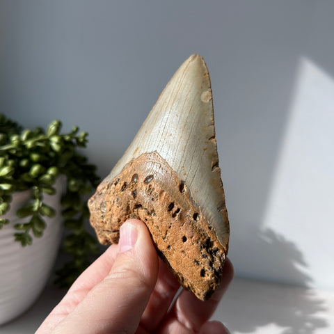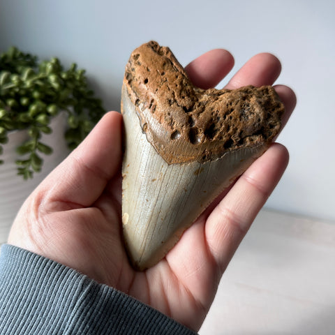 Genuine Fossil Megalodon Shark Tooth 4.4 inches