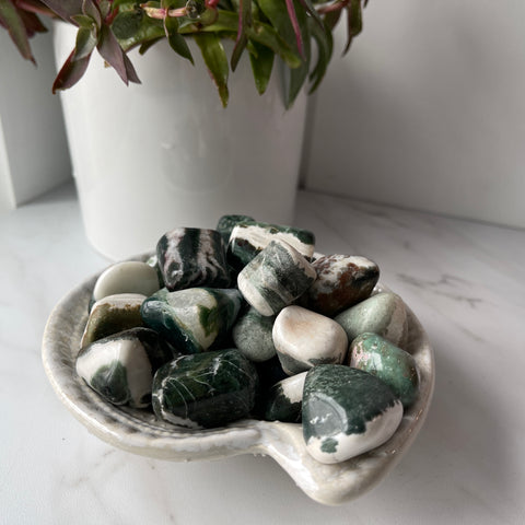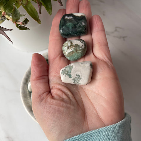 The listing is for one tumbled green sardonyx pocket stone. The stones average about 20gs and are about 1.25 inches in size.