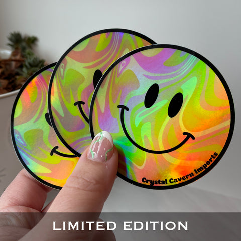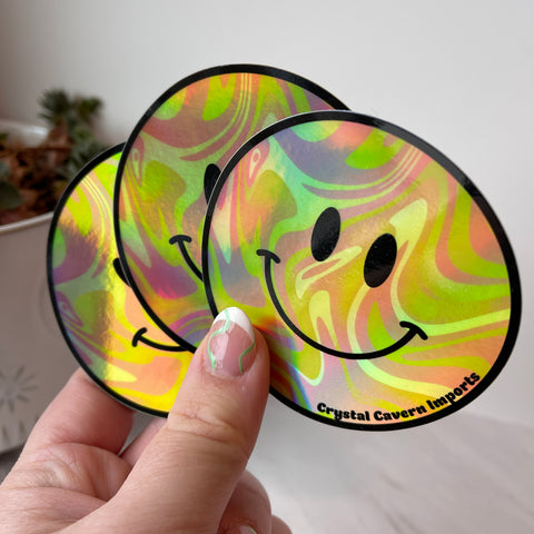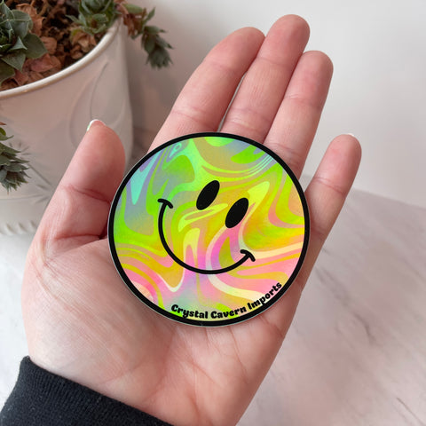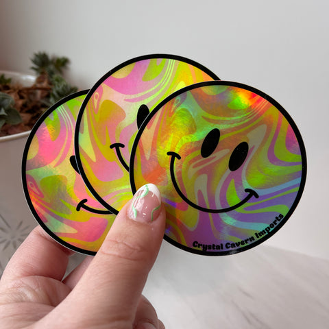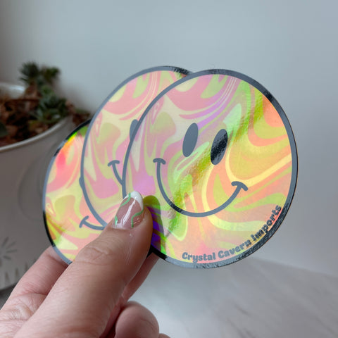 Holographic Smiley Face Waterproof Vinyl Sticker