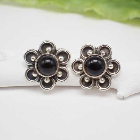 Sterling Silver Black Onyx Flower Studs