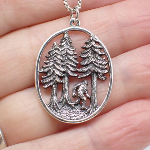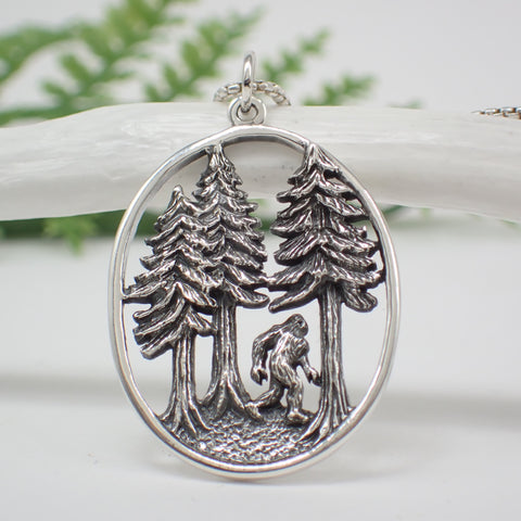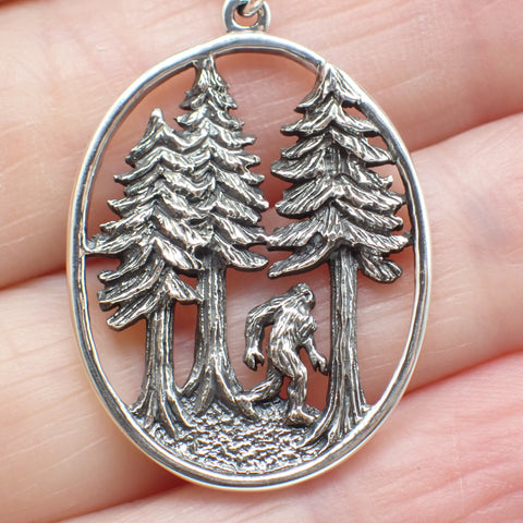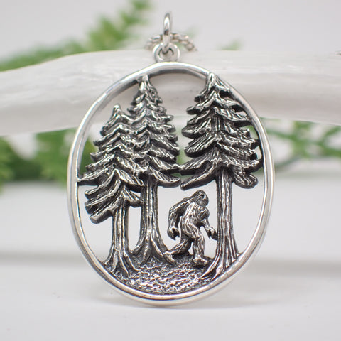 This recycled sterling silver bigfoot walking through the woods charm works great as a necklace.