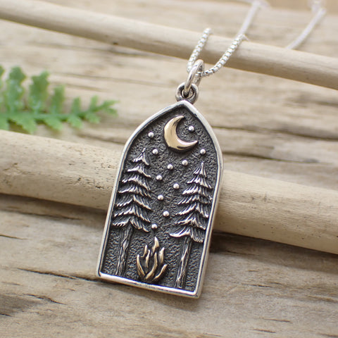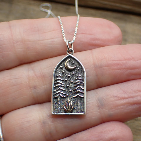 This is a beautiful bonfire and forest charm made from recycled sterling silver.