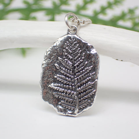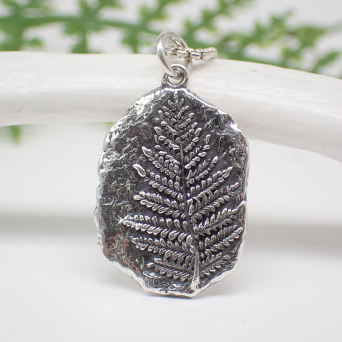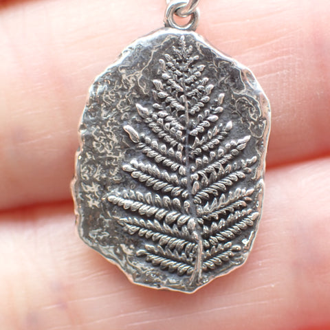This sterling silver fern fossil charm works great as a necklace or on a charm bracelet.