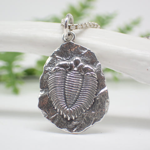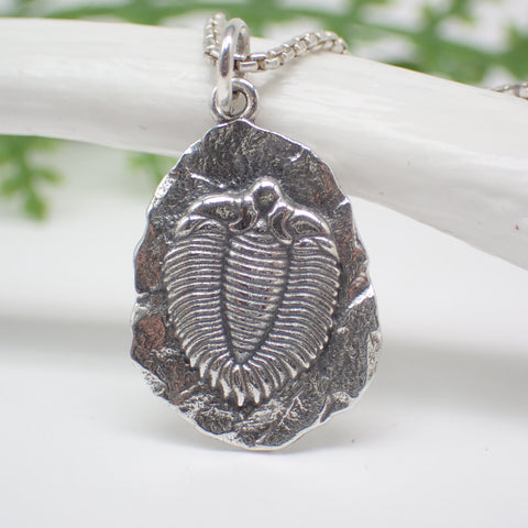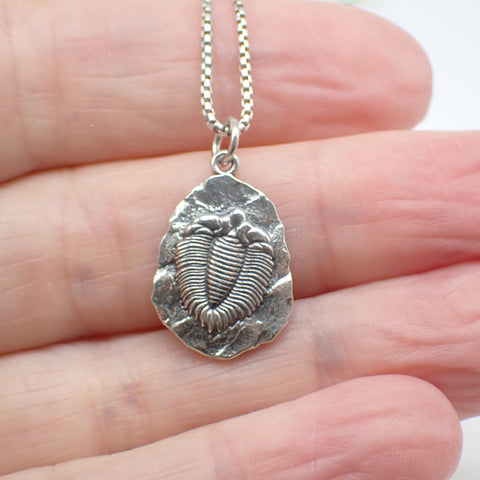 This sterling silver trilobite fossil charm works great as a necklace or on a charm bracelet.