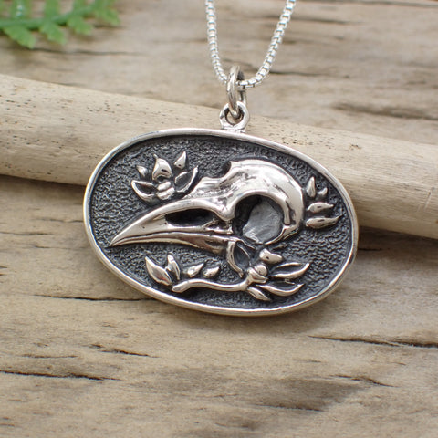 ♻️Recycled Sterling Silver Floral Raven Skull Charm
