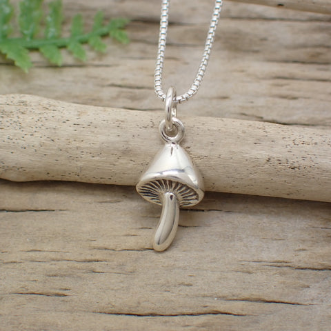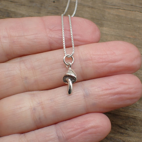 This is a tiny simple mushroom charm made from recycled sterling silver.