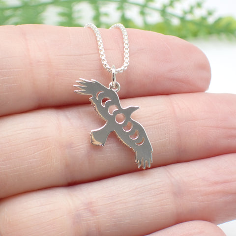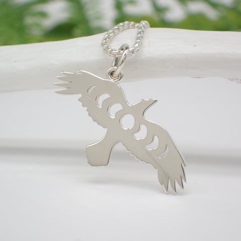 This is a beautiful simple raven with a moon phase cut out charm made from recycled sterling silver.
