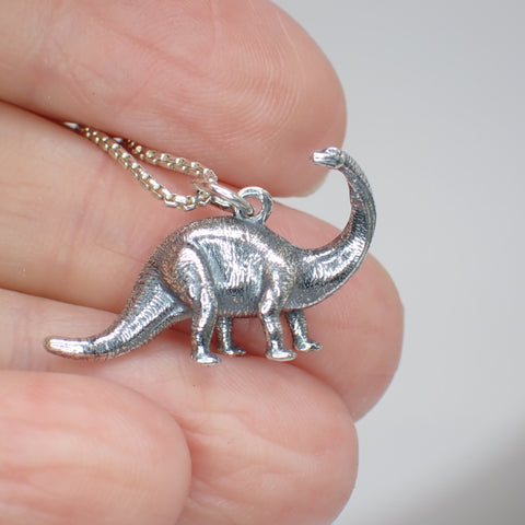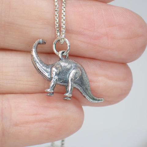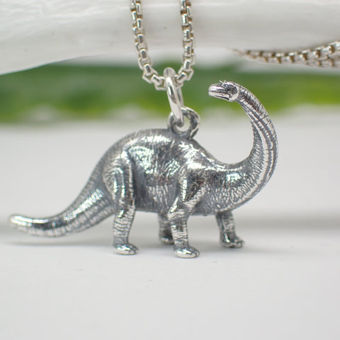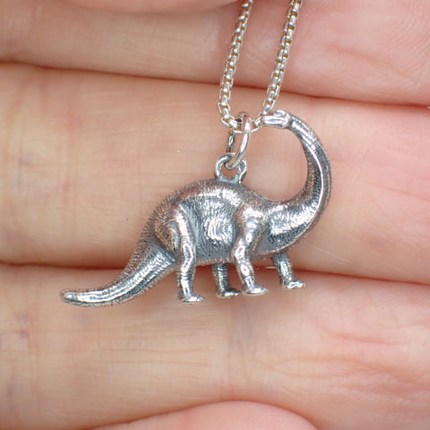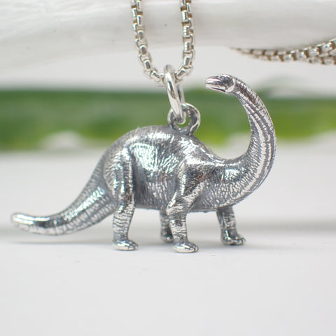 This 3D sterling silver brontosaurus dinosaur charm works great as a necklace or on a charm bracelet.