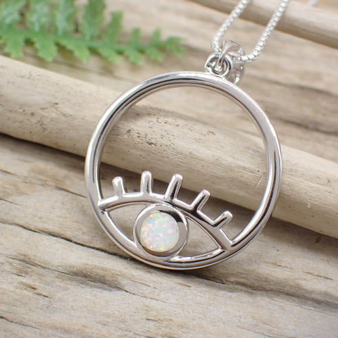 Sterling Silver White Opal All Seeing Eye Charm