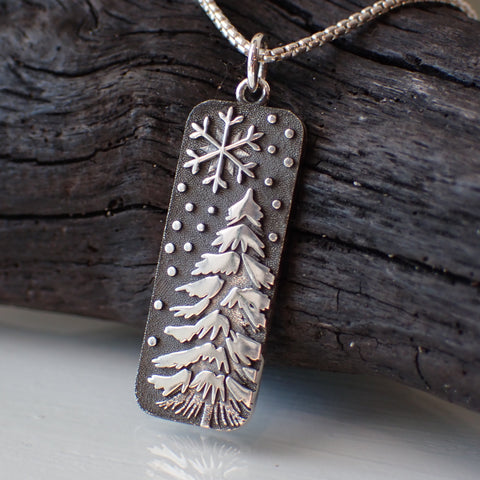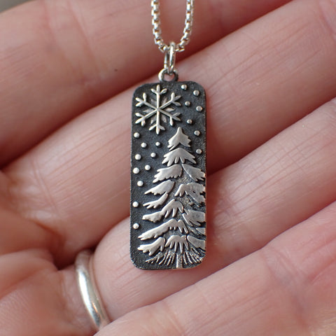 This sterling silver snowy pine tree charm is made from recycled sterling silver♻️.  The charm measures 1.2" long with the ring and is .4" wide.