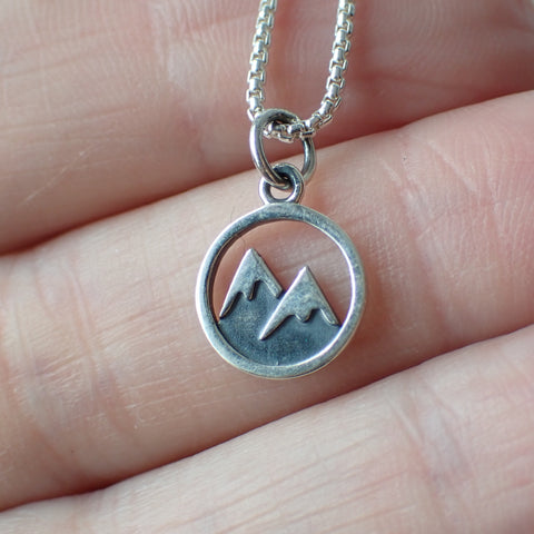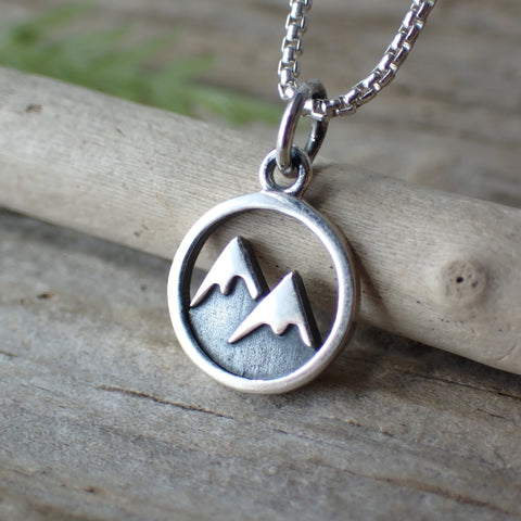 Crafted from sterling silver, this petite pendant measures a dainty 10mm in diameter, perfectly capturing the essence of twin mountain peaks.