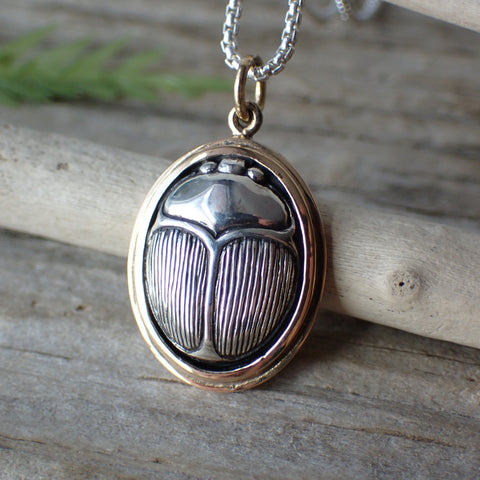 ♻️ Escarabajo escarabajo de plata de ley reciclada en collar de encanto de bronce
