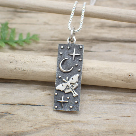 ♻️ Collar de polilla Luna de plata de ley reciclada con dije de luna y estrellas