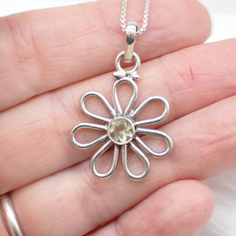Este colgante de margarita de plata de ley mide 1,25" de largo incluyendo la fianza y 0,8" de ancho. Este colgante viene en una cadena de caja redondeada de 1 mm con cuentas de plata de ley de 18" que se puede sustituir por 16" o 20". Deje un mensaje con su pedido si prefiere una longitud diferente.