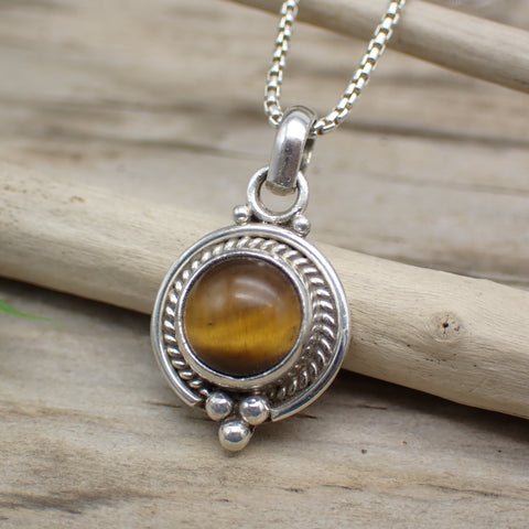 Colgante de plata de ley simple con piedras preciosas de ojo de tigre