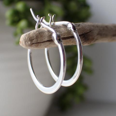 Pendientes de aro ovalados de plata de ley simples