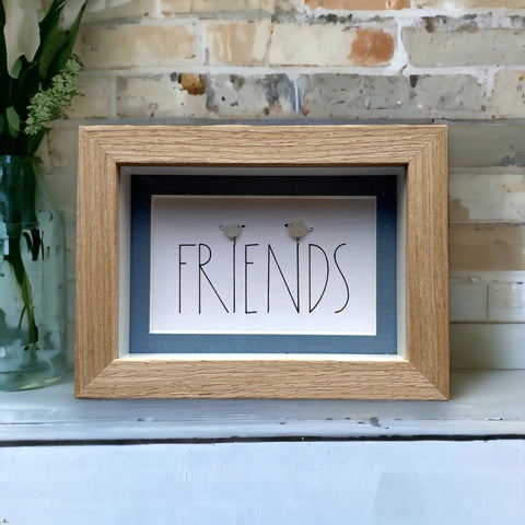 Están colocados sobre un papel texturizado libre de ácido. La imagen está enmarcada en un marco de madera lavada que se puede colgar o colocar de pie.