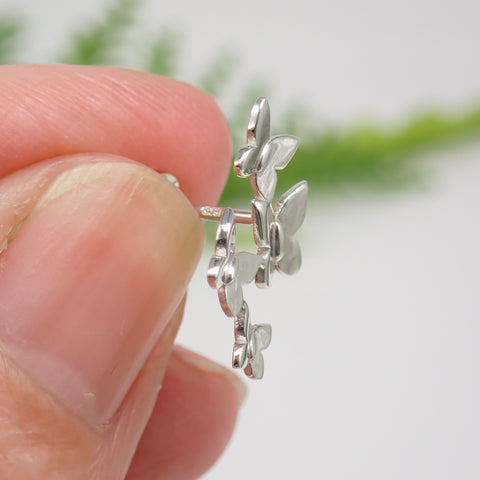 This is a pair of recycled sterling silver butterfly stud earrings.