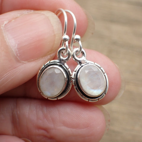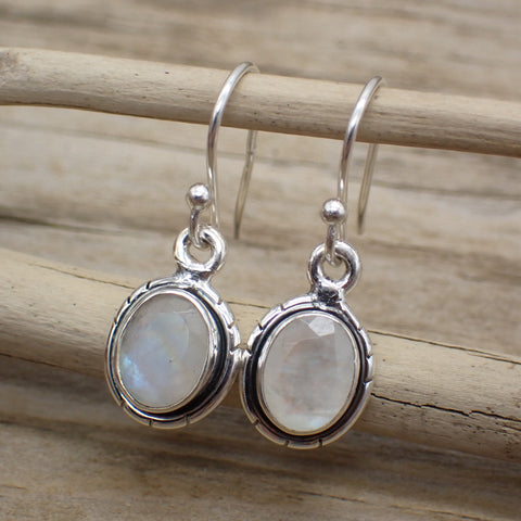 Sterling Silver Faceted Rainbow Moonstone Earrings