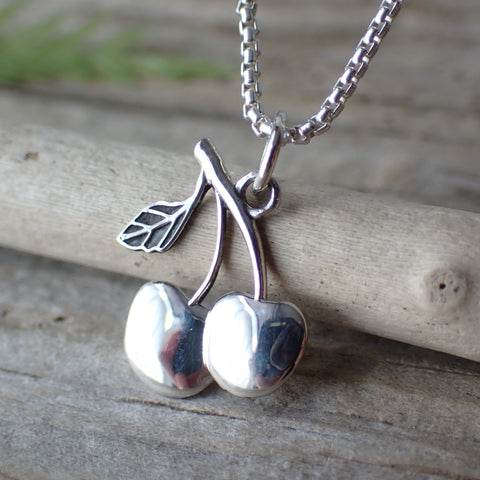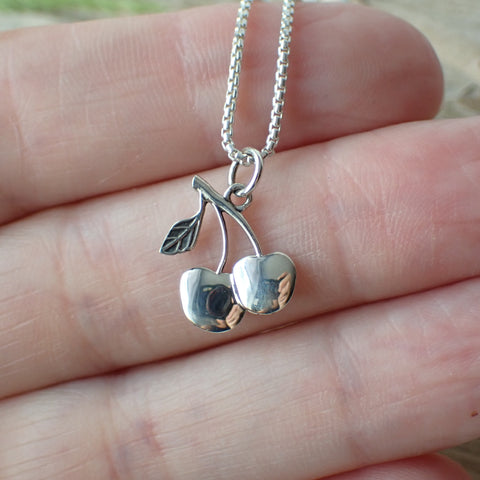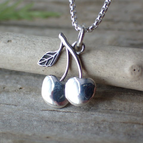 ♻️ Collier de charme de cerises en argent sterling recyclé