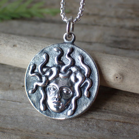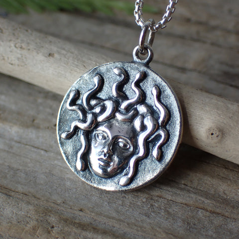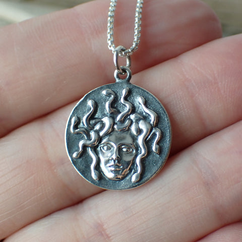 ♻️ Collier de charme de pièce de monnaie Medusa en argent sterling recyclé